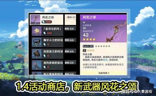 除了新角色,1.4版本还将带来全新的武器。其中,最引人注目的是莫娜的专属武器——莫娜之眼。这款武器拥有独特的外观和强大的属性,相信会成为许多玩家追求的目标。此外,还有其他几款新武器也将加入游戏,为玩家们提供更多选择。